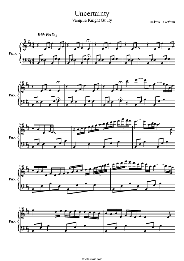 Download free sheet music (PDF fragment) for the song Haketa Takefumi - Uncertainty in the arrangement Piano.Solo