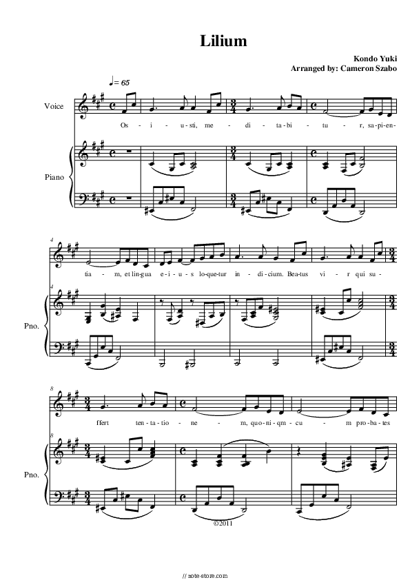 Download free sheet music (PDF fragment) for the song Lilium - Elfen Lied in the arrangement Piano&Vocal