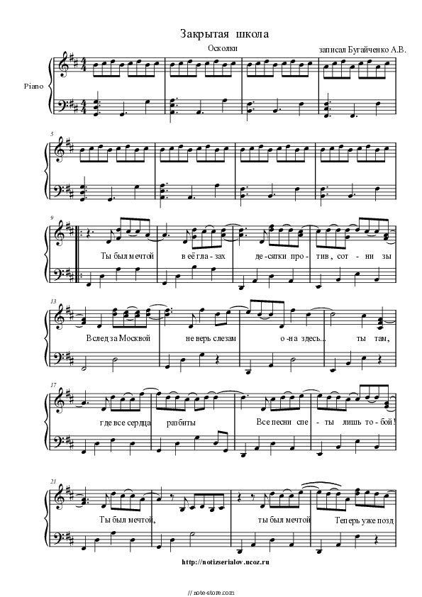 Download free sheet music (PDF fragment) for the song Marakesh - Осколки in the arrangement Piano.Solo