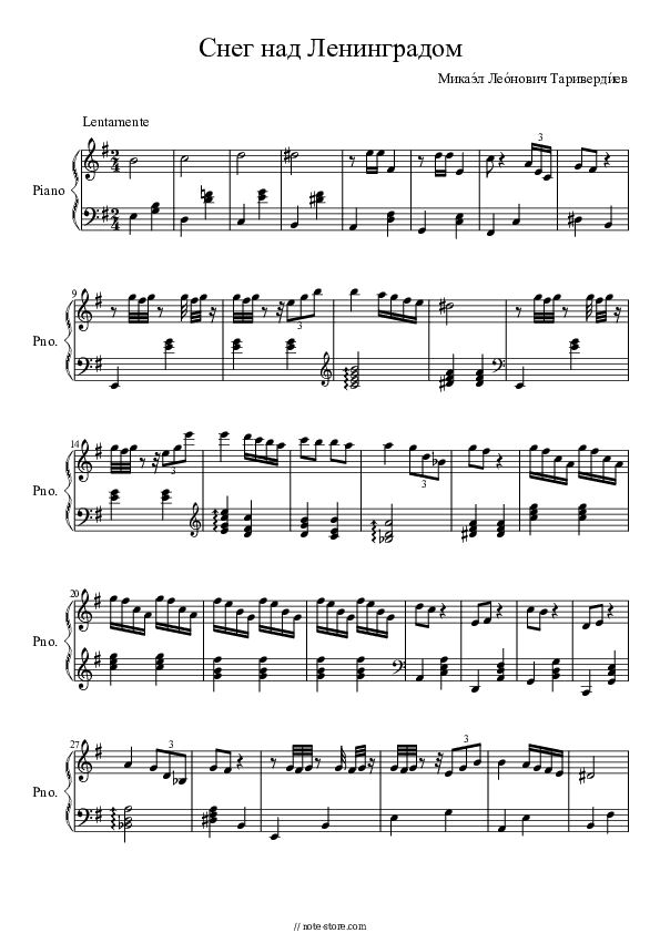Download free sheet music (PDF fragment) for the song Mikael Tariverdiev - Снег над Ленинградом in the arrangement Piano.Solo