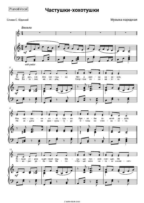Download free sheet music (PDF fragment) for the song Folk song - Частушки-хохотушки in the arrangement Piano&Vocal