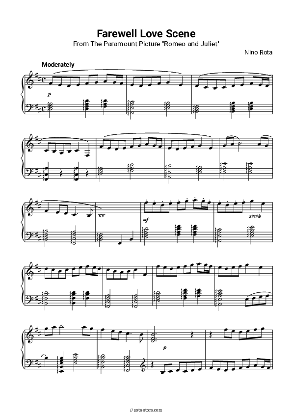 Download free sheet music (PDF fragment) for the song Nino Rota - Farewell love scene in the arrangement Piano.Solo