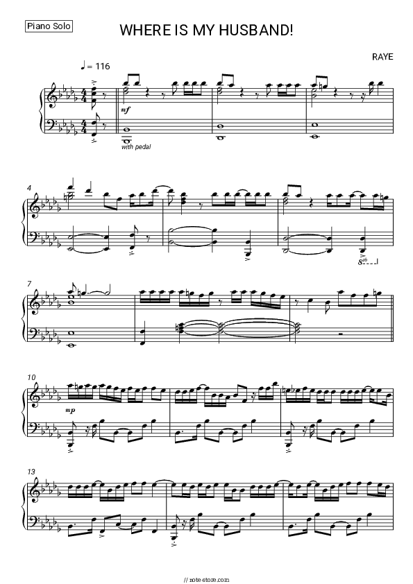 WHERE IS MY HUSBAND! - Raye Piano Sheet Music - Piano.Solo