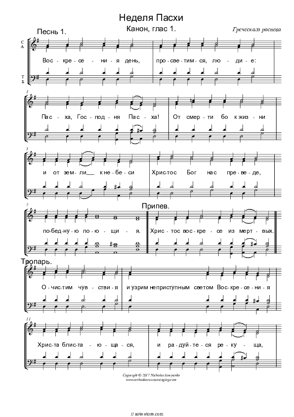 Description of the sheet music for Church music - Пасхальный канон греческого распева arranged by Piano&Vocal
