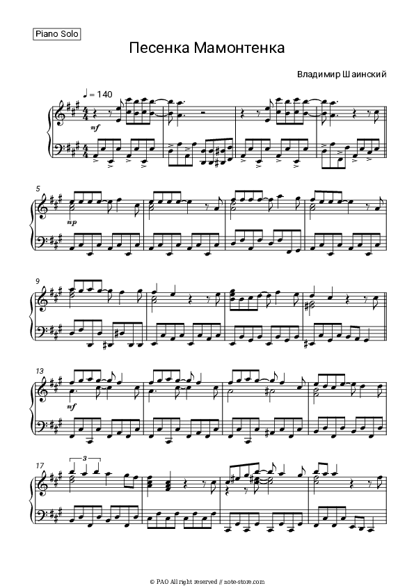 Песенка Мамонтенка - V. Shainsky Piano Sheet Music - Piano.Solo