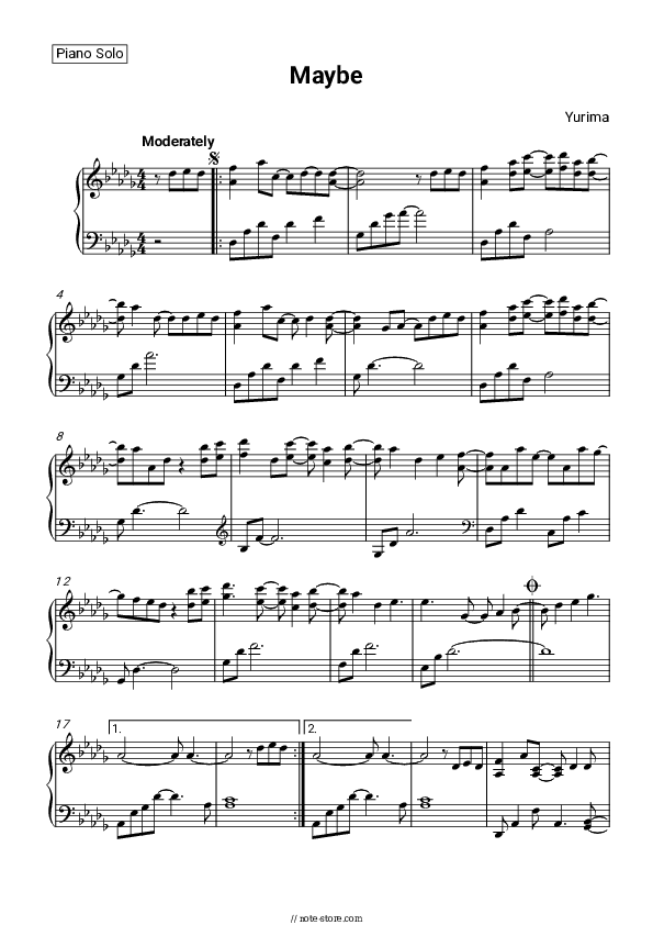 Description of the sheet music for Yiruma - Maybe arranged by Piano.Solo
