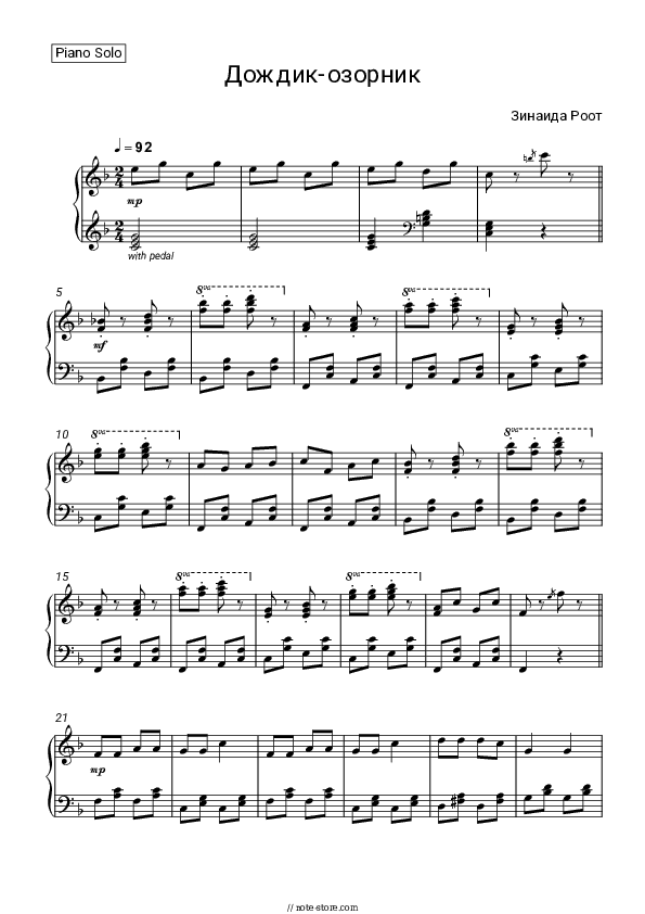 Дождик-озорник - Zinaida Root Piano Sheet Music - Piano.Solo